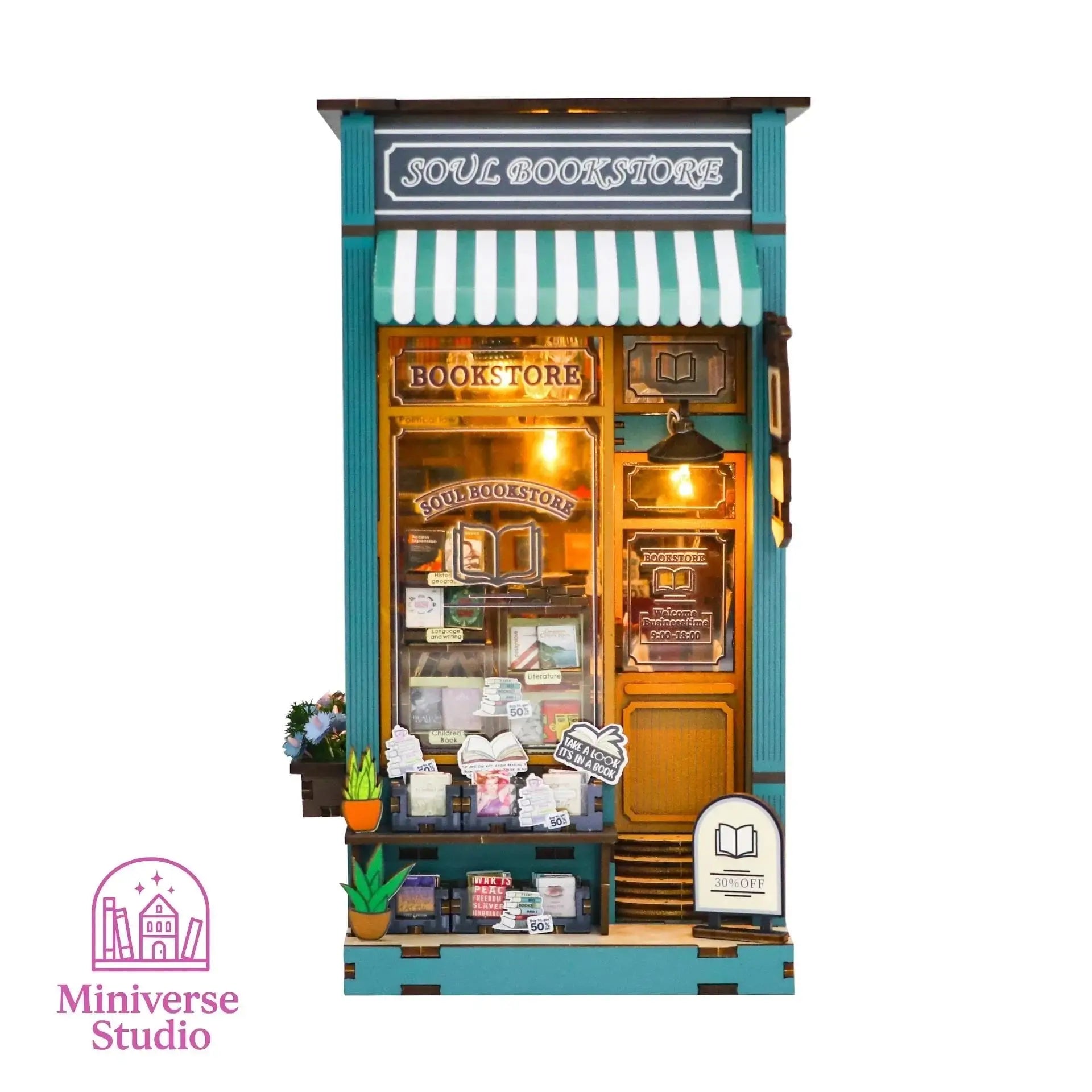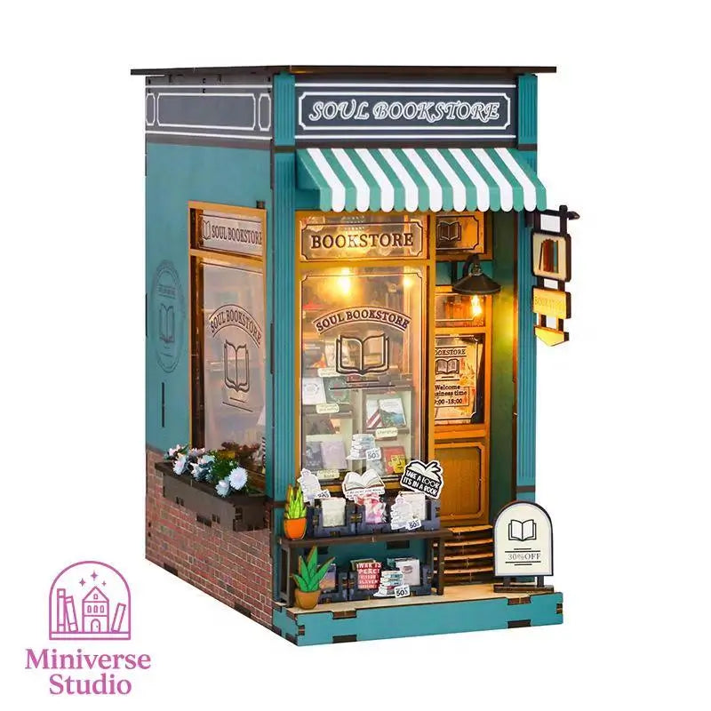 This DIY kit lets you build a miniature 3D library with classic style and realistic details. Made from laser-cut wood, it includes shelves, books, lamps, vintage decor, and an LED lighting system. Inspired by traditional bookstores, it creates a warm, nostalgic atmosphere that celebrates the love of reading. Perfect as a decorative bookend, collectible piece, or creative gift. 📦 Technical Features Materials: Wood, paper, fabric, LED components Assembled size: 22.5 × 9.2 × 15.9 cm Weight: 700 g Recommended age: 14+ Estimated build time: 4–6 hours Power source: 2 AAA batteries (not included) Contents: Pre-cut pieces, decorative accessories, LED module, instructions 🎯 Key Benefits Realistic design with visual depth Warm LED light for nighttime ambiance Classic style for book lovers Encourages focus, creativity, and relaxation Perfect gift for birthdays, Christmas, or Valentine’s Day